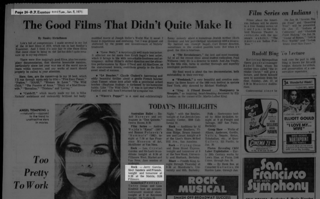 listing: San Francisco Chronicle, January 6, 1971, p. 38