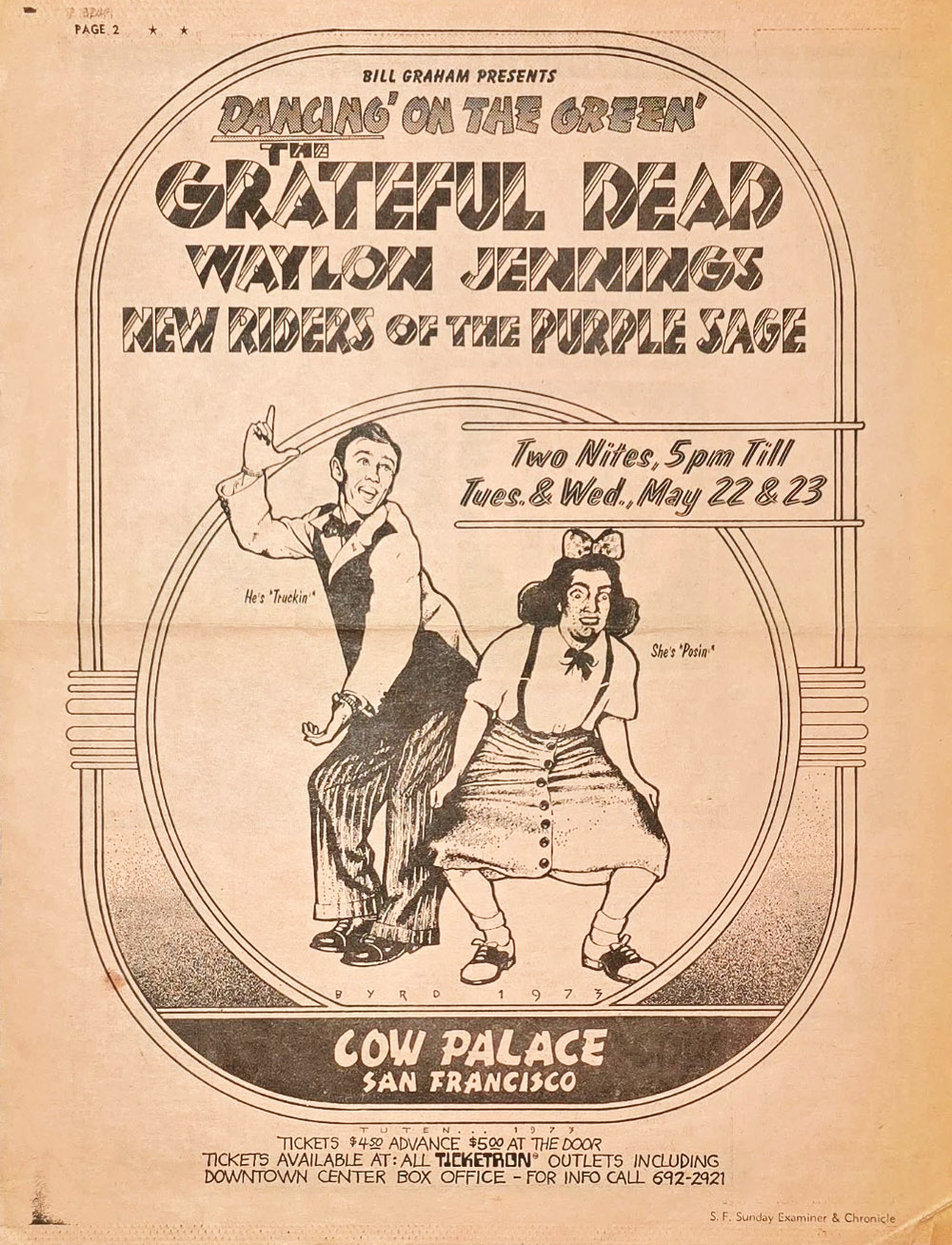 cxl. KG column of 5/4/73 says these will be May 21-22, with the NRPS and Willie Nelson. Replaced with single show at Kezar 5/26.