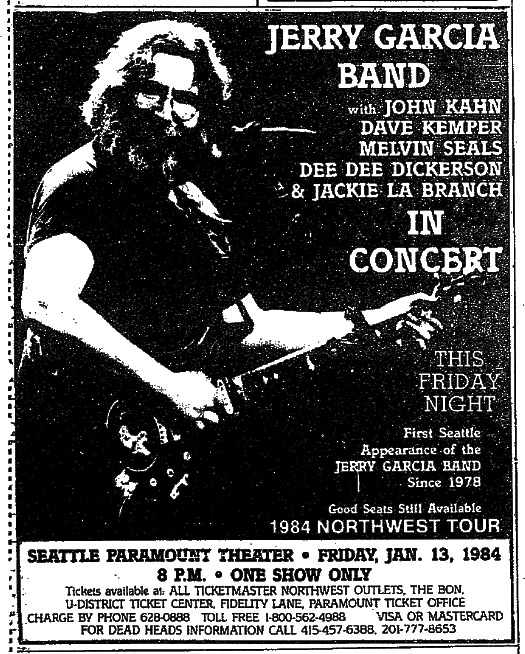 JERRY GARCIA BAND 1-13-1984 SEATTLE PARAMOUNT NORTHWEST THEATER SEATTLE WA