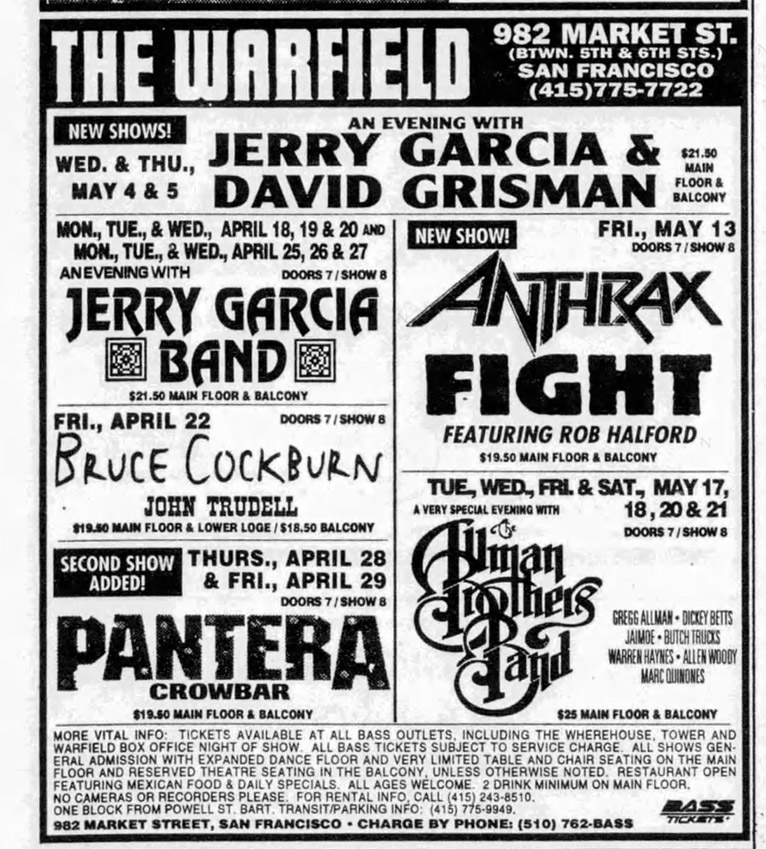 Nice RAC, Señor: JGB at the Warfield, April 25, 1994, set II