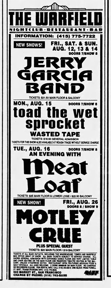 JERRY GARCIA BAND 8-12-1994 WARFIELD THEATER SAN FRANCISCO CA